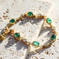 Elevate your holiday style with the exquisite beauty of NORA - a remarkable bracelet that combines the enchanting allure of six green Chlorospinel stones, each weighing 0.75 carats, with the brilliance of six 0.2-carat round stones, all set in an 18K gold-plated band.