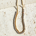Introducing our stunningly sparkly tassel style necklace, a perfect combination of trendy and elegant design. This beautiful necklace features a unique cool style that's perfect for any occasion, whether it's a girls' night out or an office day. Crafted with high-quality materials, this necklace features shimmering sparkle stones that catch the light from every angle, adding a touch of glamour to your look. The tassel design is both playful and elegant, making it a versatile accessory that pairs perfectly with any outfit. The necklace is finished in a luxurious shade of yellow gold, which adds a touch of sophistication to the overall design. The color complements a wide range of skin tones and outfits, making it a must-have addition to your jewelry collection.